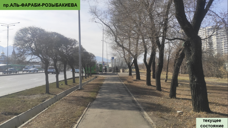 В акимате заявили, что вдоль Аль-Фараби высадят 4 346 деревьев. Общая площадь пешеходных покрытий составит 58 427 метров в квадрате.