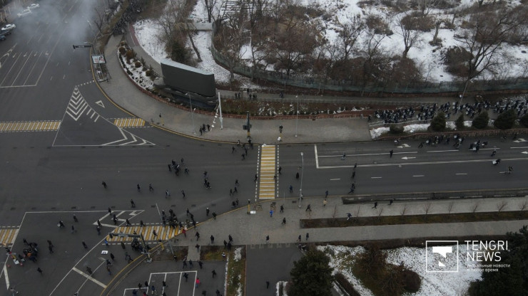 5 января новая толпа демонстрантов собралась у "Алматы Арены" и двинулась к центру города.