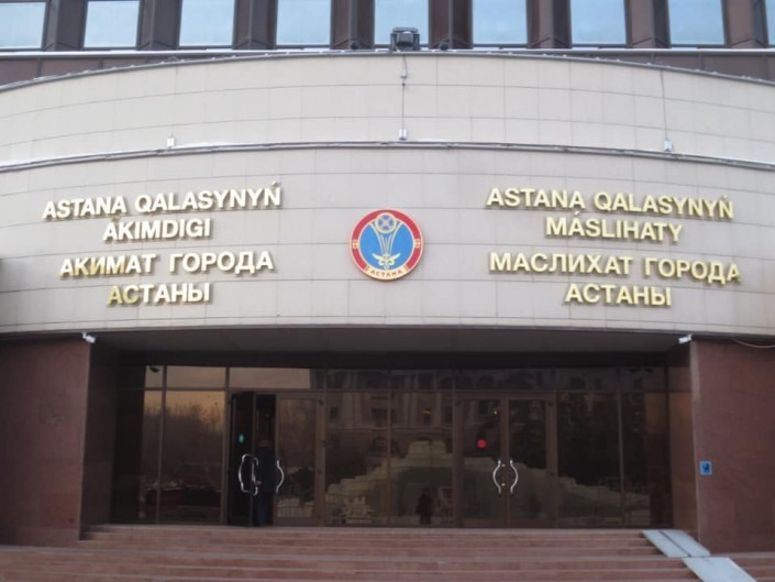 В Астане несколько государственных учреждений и частных компаний также сменили вывески на латинскую графику. Например, на здании городского акимата появилось название - Astana qalasynyn ákіmdіgі.