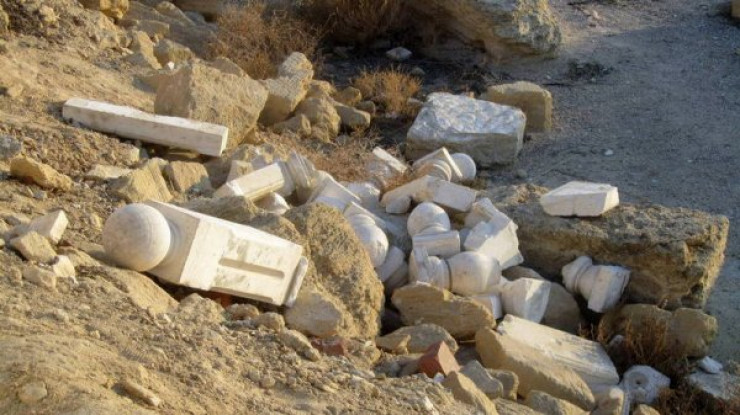На всей территории набережной резко бросаются в глаза участки разрушенной балюстрады. "Вырванные" части балюстрады разбросаны за ограждением.