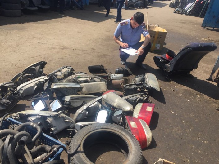 На данное время полицейскими изъято более 500 запчастей: автомагнитолы, фары, зеркала, аккумуляторы и другое, их происхождение продавцы объяснить не смогли.