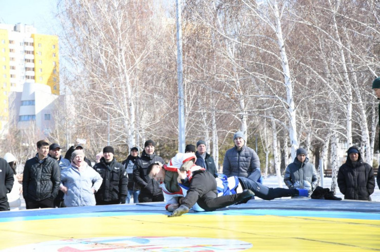 На отдельных спортивных площадках проводятся состязания по национальным видам спорта.