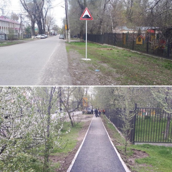 "Новые тротуары уже появились в Турксибском районе на отрезках улиц Стахановская, Парижской коммуны, Шымкентская, Буденного. В Ауэзовском районе - на нескольких междворовых участках в микрорайонах № 6 и № 8. В Бостандыкском районе - по улице Дунаевского между Жарокова и Ходжанова. Аналогичные работы ведутся во всех районах города", - информируют в акимате Алматы.