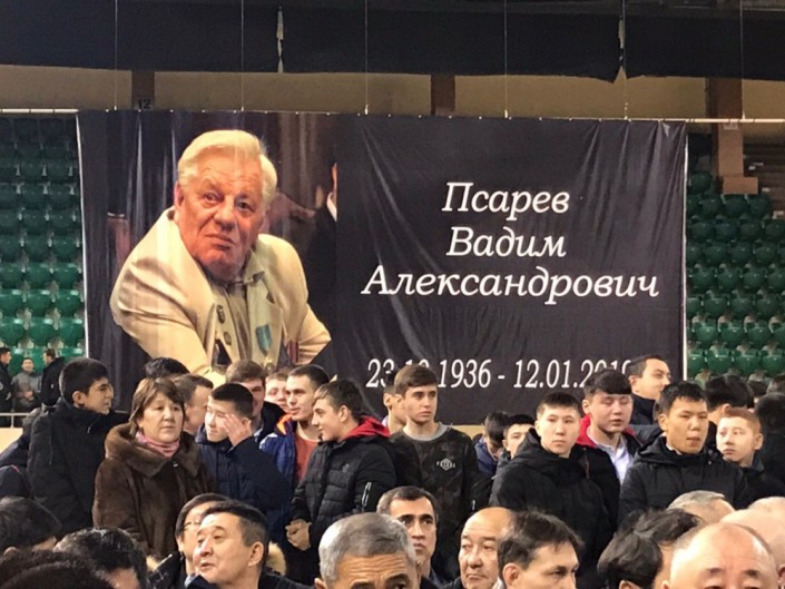 Во Дворце имени Балуана Шолака в Алматы прошла панихида по легендарному тренеру по греко-римской борьбе Вадиму Псареву, сообщает корреспондент Тengrinews.kz. Он ушел из жизни 12 января.