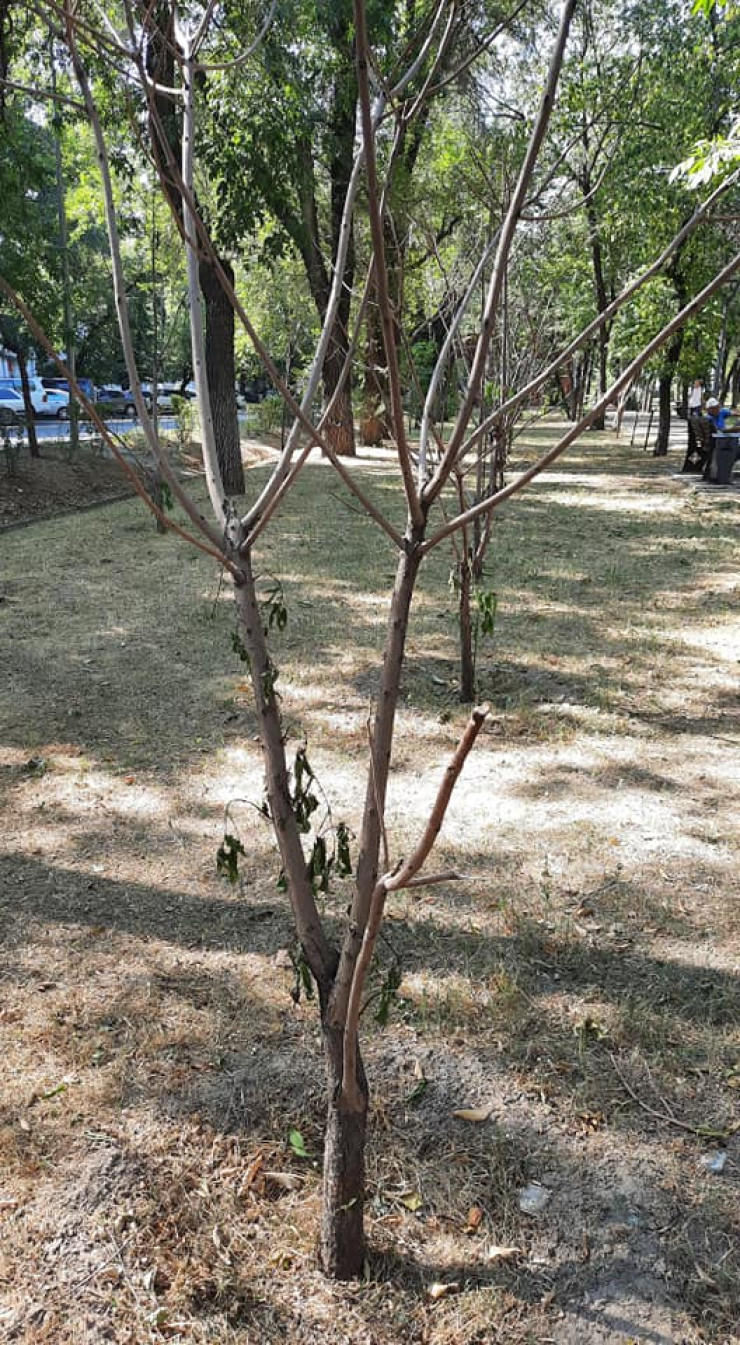 В Алматы саженцы высохли из-за сильной жары. Алматинцы публикуют фотографии погибших деревьев в социальных сетях, передает корреспондент Tengrinews.kz.