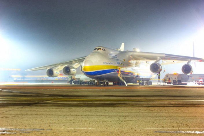 Это вторая посадка уникального самолета в аэропорту Алматы. 13 декабря "Мрия" приземлилась на дозаправку по пути из Германии в Китай.