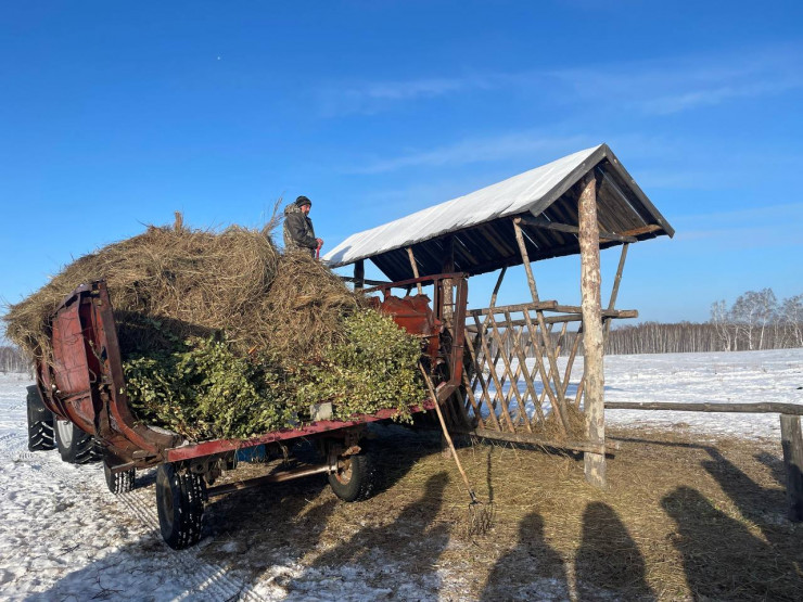 Маралы, с одной стороны, дикие, к чужим людям они не подходят, запрягать себя не дают. Но с удовольствием едят сено и другие полезные вкусности - овес, рапс, пшеницу, заготовленные с лета растительные веники, хвою, кроны сосен, соль. Привыкшие к открытым пространствам, животные в сильные морозы сами заходят в расставленные по периметру фермы навесы.