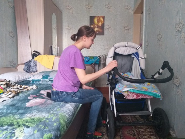 До февраля этого года здесь жили еще семь семей. Позже жильцов переселили в новый дом. А семья Ирины осталась. Вместе с женщиной в квартире живет брат, муж, шестимесячный сын и ее 58-летняя мама. Пожилая женщина страдает серьезным сердечным заболеванием и по медицинским показаниям ей разрешено жить в квартире не выше третьего этажа.