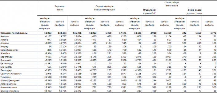 По данным комитета по статистике МНЭ РК, в страны СНГ выбыло 15 399 казахстанцев, в другие страны - 1 772 казахстанца.
