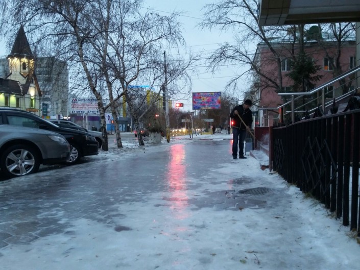 Резкое потепление превратило улицы Костаная в сплошной каток. Автобусы не вышли на линии, автомобилей на улицах стало в разы меньше. Как сообщает городской акимат, 120 рабочих и 15 единиц техники очищают дороги с 4 утра: засыпают проезжие части песком и солью, но этого явно мало. Общественный транспорт начнет работу ориентировочно только после 10 утра. Этим пользуются таксисты, которые заламывают цены на свои услуги.