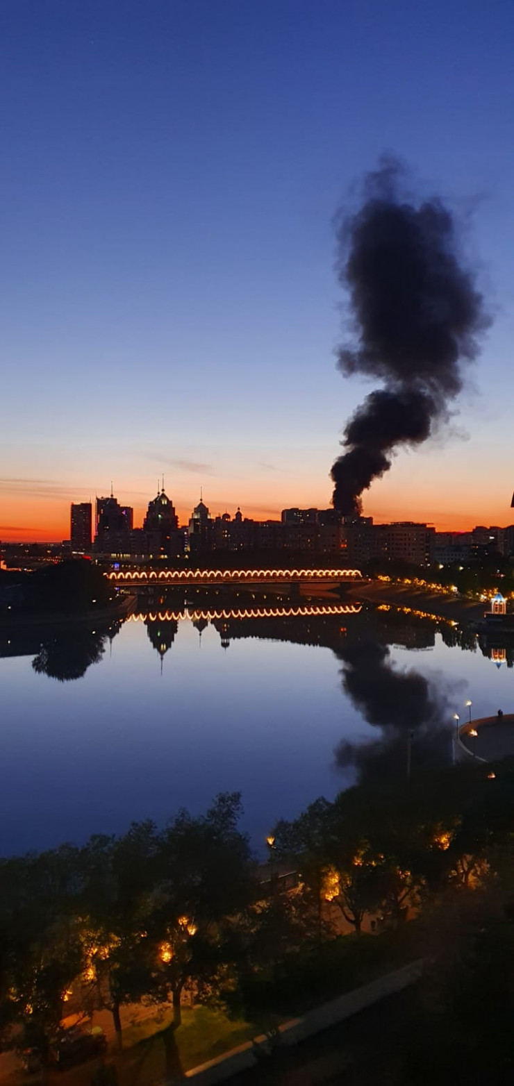 Очевидцы сообщили о густом дыме на правом берегу Нур-Султана. На некоторых фотографиях отчетливо видно полыхающее пламя и клубы черного дыма.