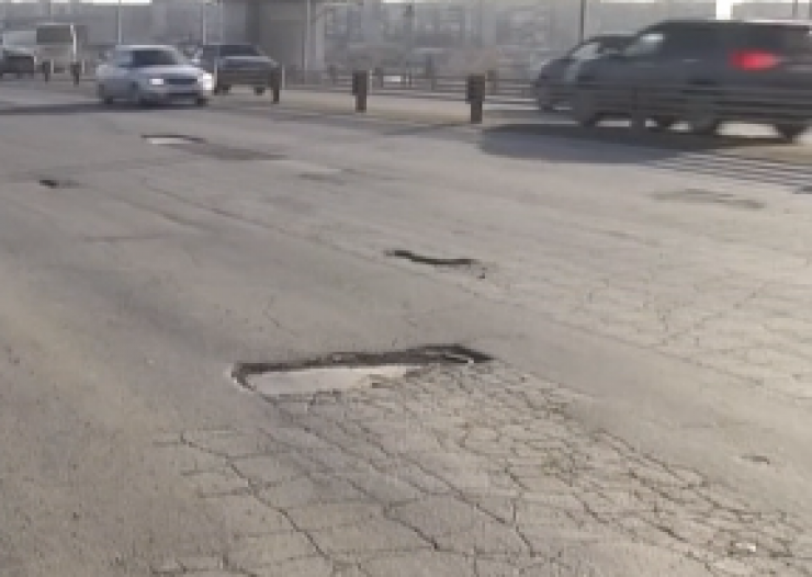 Дорожное покрытие все в трещинах. Асфальт буквально крошится под колесами автомобилей. Видно, как здесь уже латали ямы. И не раз. С наступлением весны их стало еще больше.