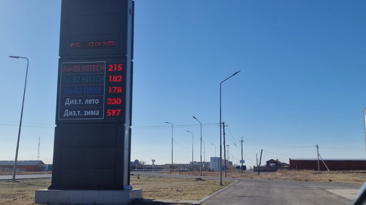 Цена на АИ-92 варьируется от 175 до 187 тенге за литр. Дизтопливо пока реализуют по 230 тенге за литр. В регионе свыше 130 автозаправочных станций, в том числе порядка 36 мелких.