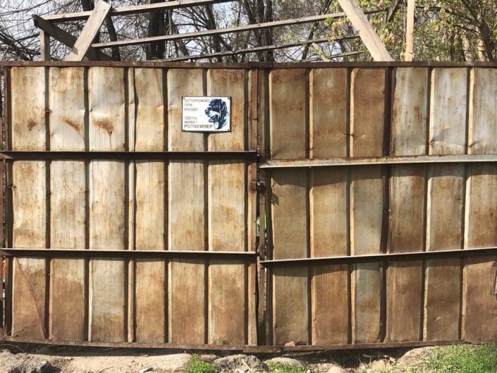 Предупреждающая табличка на воротах. Фото Tengrinews.kz