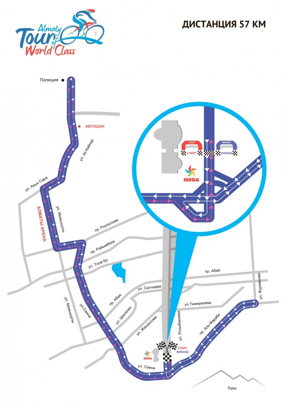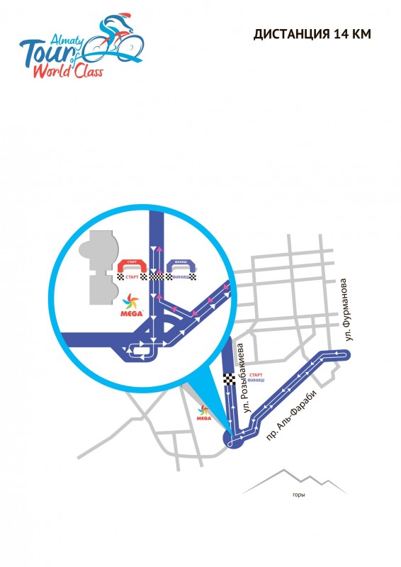 Старт велогонки запланирован в 8 утра напротив ТРЦ "Mega Alma-Ata" по улице Розыбакиева. Регистрацию уже прошли 750 участников.