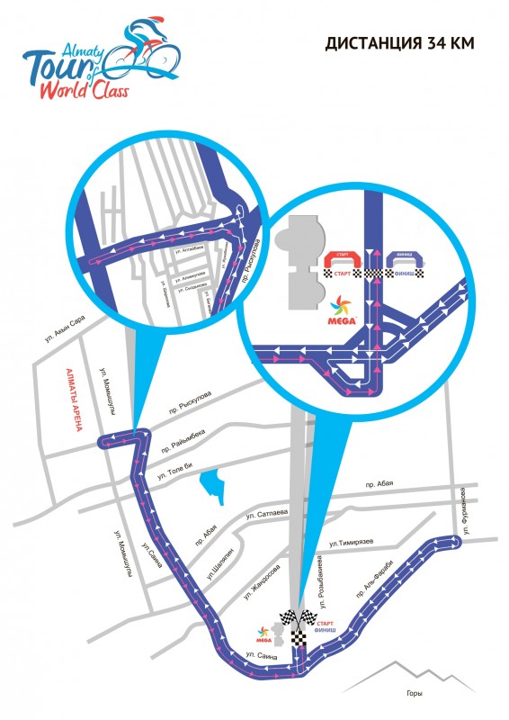 Организаторы велогонки просят жителей и гостей города Алматы при планировании своего дня обратить внимание на график перекрытия дорог, пролегающих по маршрутам дистанций. Всего участникам предложены на выбор три вида дистанций: профессиональная - 57 километров, основная - 34 и детская - 14 километров.