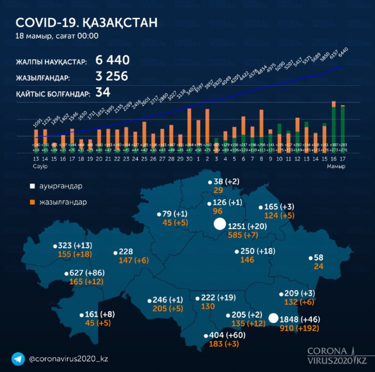 Всего в стране выявлено 6440 заболевших, число выздоровевших пациентов увеличилось до 3256 человек. Летальных случаев - 34.