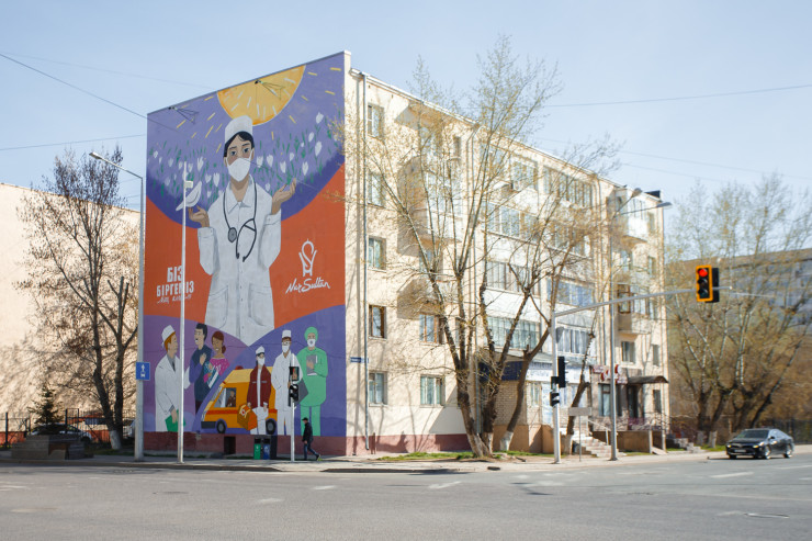 Изображение врачей появилось на фасаде жилого комплекса, расположенного на перекрестке проспекта Сарыарка и улицы Джангильдина. Как отмечается, с инициативой посвятить медработникам мурал вышло творческое сообщество столицы.