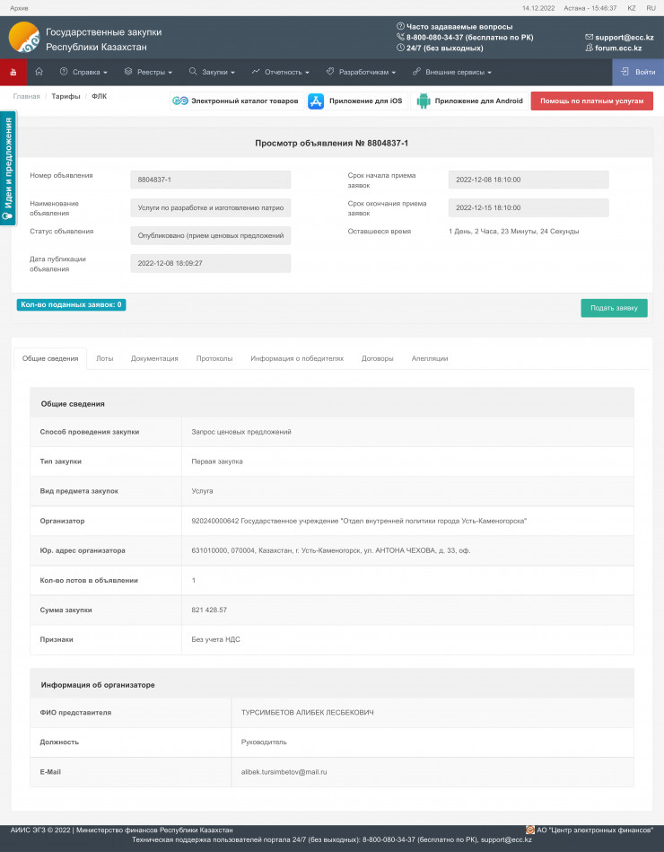 Примечательно, что опубликовано объявление было еще 8 декабря, но заявок от желающих поучаствовать в конкурсе до сих пор нет. Итоги должны быть подведены уже завтра.