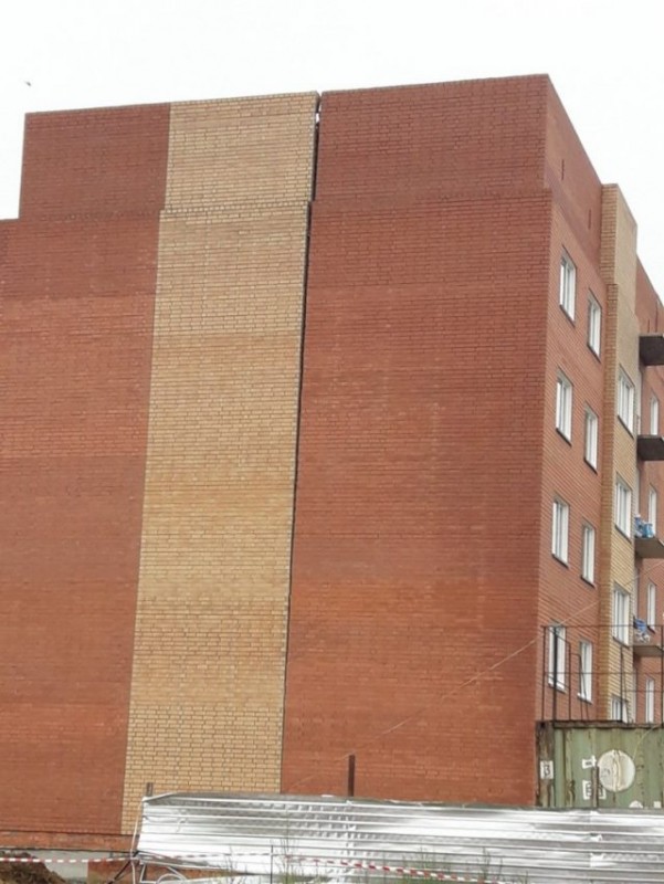 Как сообщили очевидцы, этот дом находится в микрорайоне Юбилейный на перекрестке улиц Гагарина и Чекмарева. Многоэтажку еще не сдали в эксплуатацию, но там уже появилась щель между кирпичами.