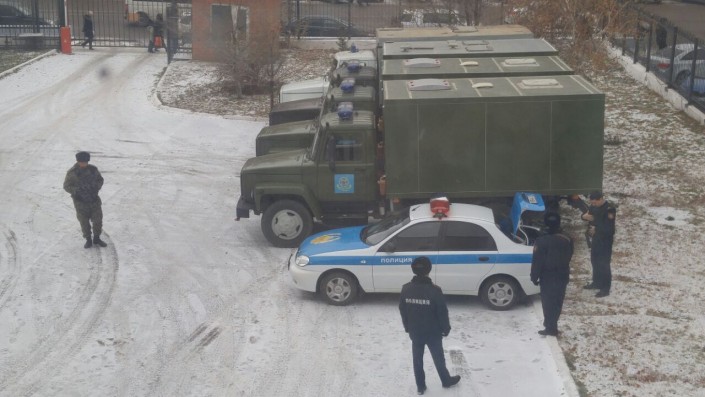 На этих машинах подсудимые были доставлены в суд. Фото Tengrinews.kz