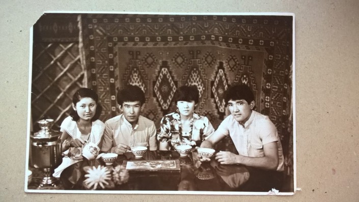 Молодые Багиша и Танрберген впервые познакомились на встрече у друзей. Влюбляться, как утверждает Танрберген ага, не собирался. Ушел в армию на два года, вернулся, а по приезде думал, куда устроиться на работу. В канун 8 Марта он решил собраться на квартире с одноклассниками и поздравить девчонок с праздником. Вечером со своей подругой приехала она - его будущая жена, начались ухаживания, свидания.