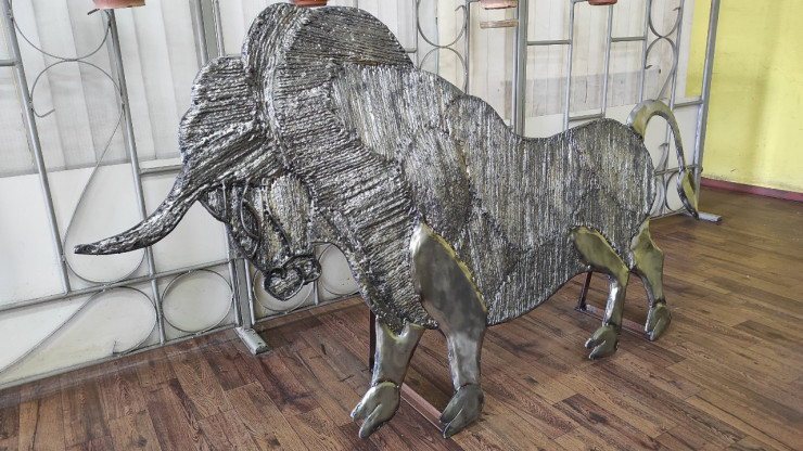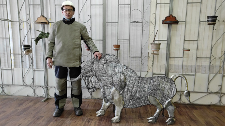 Электрогазосварщик пятого разряда Сергей Еременко изготовил 30-килограммовую фигуру быка из отходов обычной металлической проволоки, передает Tengrinews.kz.