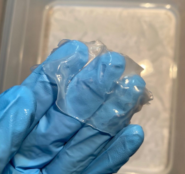 "С биомассой мы обратились к химикам, подумали совместно и решили, что можно сделать что-то вроде пластика. В составе биомассы каппа-каррагинан (природный гелеобразователь. - Прим.) - очень хорошая основа для пластика. Добавили тиосульфат натрия (используется как пищевая добавка, противоядие при отравлении тяжелыми металлами. - Прим.). Пробовали добавить другие ингредиенты, но потом убрали их. В итоге получили достаточно твердую пластину", - рассказал Даулет.