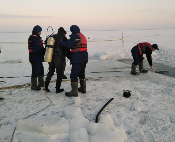 "Толщина льда была 25 сантиметров. На глубине семи метров был обнаружен автомобиль УАЗ с телами погибших. В 10.05 силами оперативно-спасательного отряда ДЧС тела четырех погибших человек извлечены и переданы сотрудникам полиции", - сообщили в МЧС.