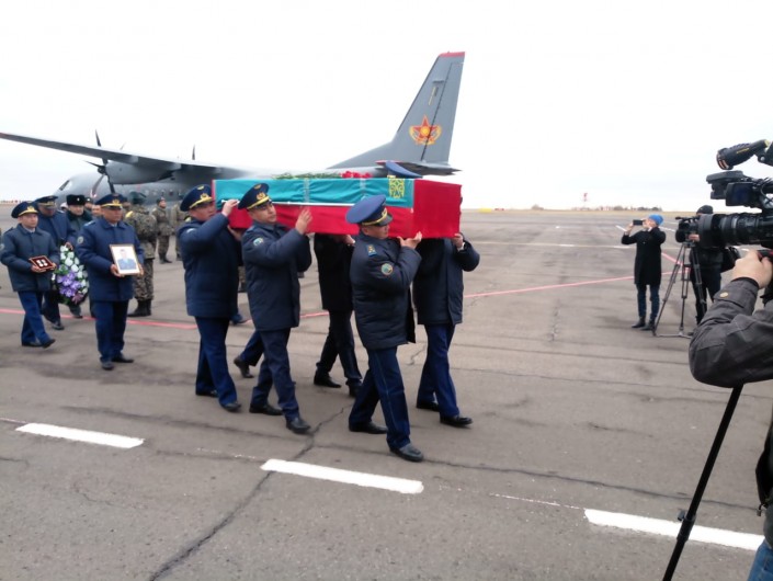 Тело Романа Костыгова доставили в Павлодар. Спецборт прибыл в аэропорт в 16.30. Гроб с телом погибшего доставил главнокомандующий силами воздушной обороны ВС РК генерал-майор авиации Нурлан Карбенов.