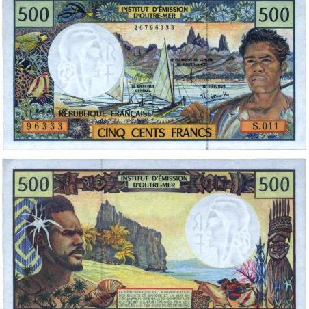На четвертой строчке - французский тихоокеанский франк. Банкнота номиналом в 500 единиц показывает людей, флору и фауну островов.