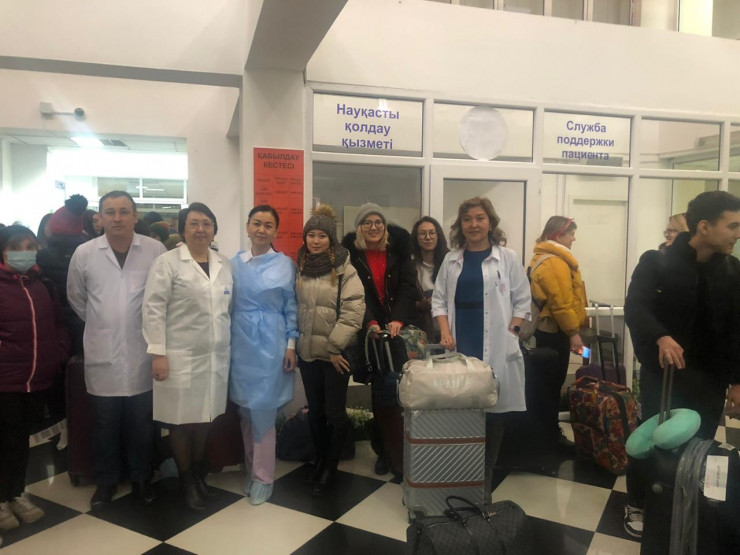 Врачи и казахстанцы после окончания карантина 174 прибывшего из Китая