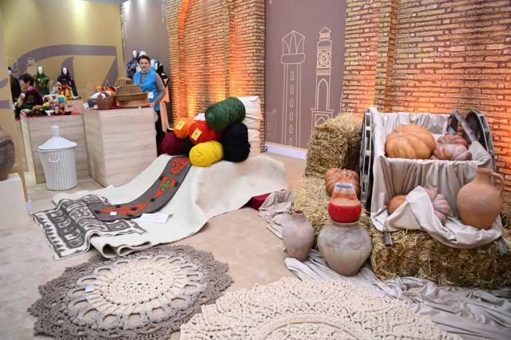 На выставке 29 ремесленников выставили изделия из войлока, шерсти, кожи и дерева, керамическую и глиняную посуду, панно, национальные музыкальные инструменты, национальную одежду, конное снаряжение, а также ювелирные изделия.