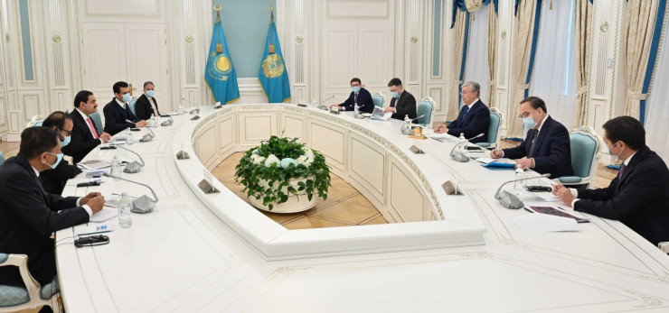 "Касым-Жомарт Токаев поприветствовал планы индийского мультинационального конгломерата Adani Group по развитию транспортной инфраструктуры в регионе. Президент отметил, что Казахстан проводит работу над диверсификацией транспортных направлений и активно развивает Транскаспийский международный транспортный маршрут", - отмечает пресс-служба Президента Казахстана.