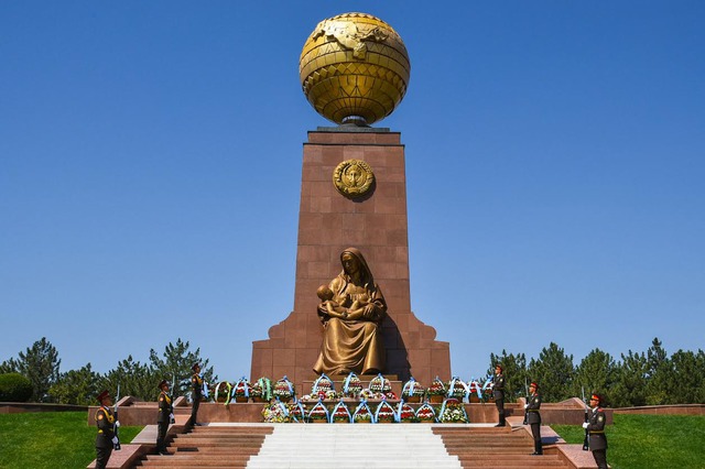 Монумент независимости и гуманизма на площади Мустакиллик в Ташкенте представляет собой украшенную орнаментальным узором металлическую сферу с выделенной картой Узбекистана. Он был установлен в начале 1990-х, а в декабре 2005 года был дополнен скульптурой "Счастливой матери".