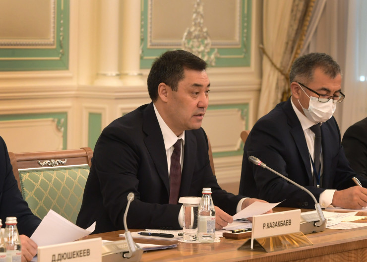 "Сегодняшние переговоры традиционно проходят в духе союзнических отношений и стратегического партнерства, которые характеризирует взаимоотношения между нашими государствами. На встрече в узком формате мы с Касым-Жомартом Кемелевичем затронули ряд важных вопросов двустороннего сотрудничества и взаимодействия наших стран в рамках региональных и международных организаций. Хочу заявить, что между нашими странами нет никаких политических противоречий", - сказал Садыр Жапаров.