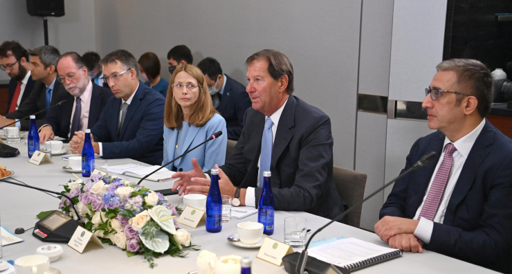 Программу визита Главы государства в Нью-Йорк открыла встреча в формате рабочего завтрака с руководителями глобальных финансовых институтов, среди которых такие компании, как Citi, Goldman Sachs, NASDAQ, Auerbach Grayson & Company LLP, Franklin Templeton, Brightlight Capital, AllianceBernstein, Jefferies Financial Group, Luxor Capital Group, Paine Schwartz Partners LLC, New Silk Road Forum, Robotti & Company Advisors, TPG Capital, Grupo Los Grobo.
