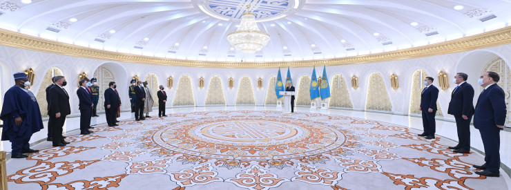 Верительные грамоты вручили послы Кубы - Оскар Сантана Леон (с резиденцией в городе Нур-Султане), Бангладеш - Камрул Ахсан, Доминиканской Республики - Франк Ганс Данненберг Кастельянос, Аргентины - Эдуардо Антонио Зуайн, Перу - Хуан Хенаро дель Кампо Родригес, Нигерии - Якубу Сантураки Сулейман, Лаоса - Вилаван Йиапохэ, Чада - Адам Бешир Махамуд, Руанды - Фиделис Нтампака Миронко, Бенина - Акамби Андре Окунлола-Биау.