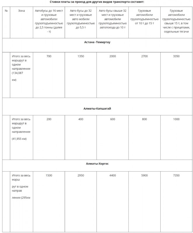 Запуск системы взимания платы стартует 26 января 2019 года на автодорогах Астана - Темиртау (134 километра), Алматы - Капшагай (42 километра), Алматы - Хоргос (295 километров).