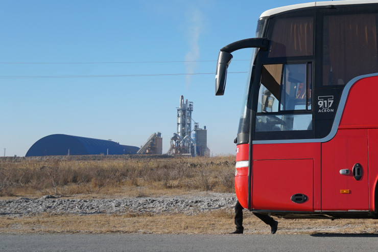 "Здесь не выполняются санитарные нормы. Завод построен от нас всего лишь в 500 метрах. А по закону должно быть от километра до трех километров. Они нас должны хотя бы переселить отсюда. Их общежитие и офис, к примеру, в трех километрах от завода. В наше село была проведена инфраструктура, чтобы люди здесь могли дома строить. Однако, как только завод появился, больше строить здесь дома никому не дают. Получается, деньги, выделенные на проведение света и дороги, были пущены на ветер", - говорит Алмас Дуйсенбаев журналистам и общественникам, которые приехали в регион на красном автобусе.