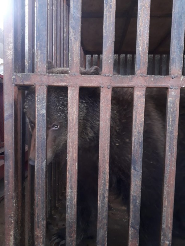 "2019 жылы 3 ақпанда шамамен сағат 11:00 де Түркістан облысы Сайрам АІІБ "102" кезекші пультіне азамат Б.Д. хабарласып, Сайрам ауданы, Қарабұлақ ауылында орналасқан жаңа мал базарының аумағында аю жануарының темір тор ішінде тұрғанын хабарлады. Осы хабарлама бойынша сол күні Сайрам АІІБ табиғат қорғау, Түркістан облысы аумақтық орман шаруашылығы және жануарлар дүниесі инспекциясының және "Охотзоопром" ӨБ" РМҚК инспекторларының бірлескен тексеруі барысында жоғарыда аталған мал базарында көлемі 2х3 темір тордың ішінде бір дана ақшыл-қоңыр түсті жабайы аюдың тұрғаны анықталды", - деп хабарлады ПД баспасөз қызметінің өкілдері.