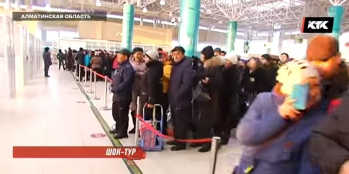 Тысячи человек не могут покинуть казахстанско-китайскую границу из-за нехватки транспорта. Туристов до таможенного поста перевозят всего 25 автобусов. При этом ежедневно в Международный центр приграничного сотрудничества "Хоргос" заезжает почти шесть тысяч человек - из Казахстана, Кыргызстана, Узбекистана и России. В ожидании транспорта люди с товаром вынуждены часами стоять на улице, а затем драться за место в автобусе. Об этом говорится в сюжете телеканала КТК.