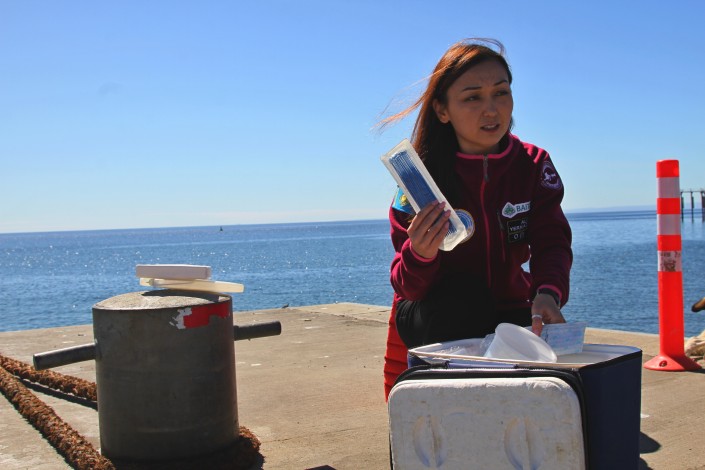 Алия Ерназарова является микробиологом по профессии и прошла жесткий отбор, чтобы оказаться в числе избранных участников уникальной экспедиции. Она является заместителем директора по науке в научно-исследовательском институте проблем экологии при КазНУ имени Аль-Фараби. По словам Ерназаровой, Антарктида интересна не только биологам, но и ученым со всего мира.