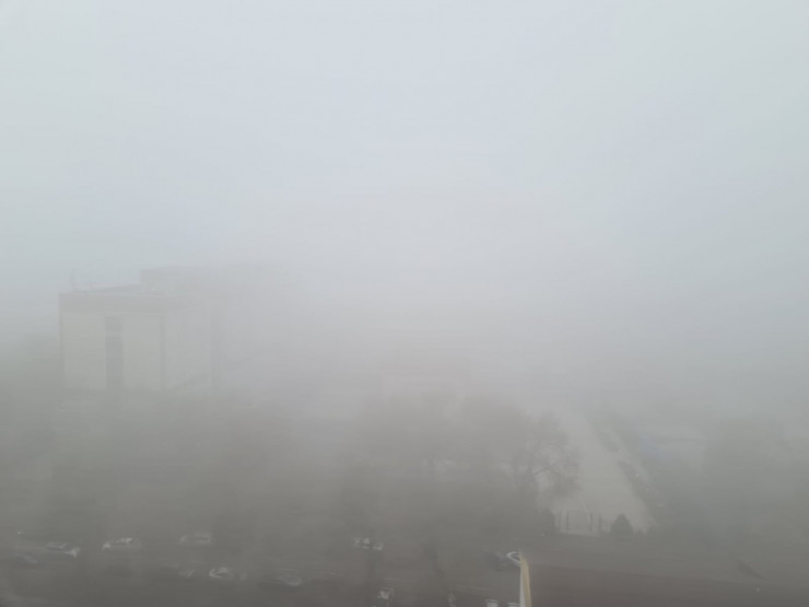 Алматинцы сообщают, что центральную часть города накрыл густой туман.