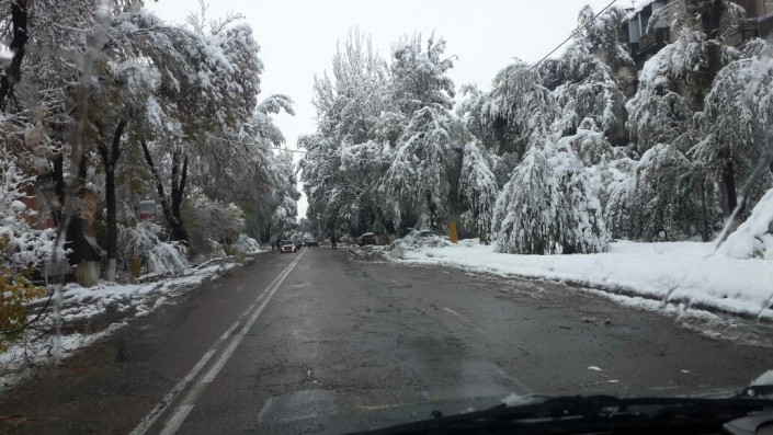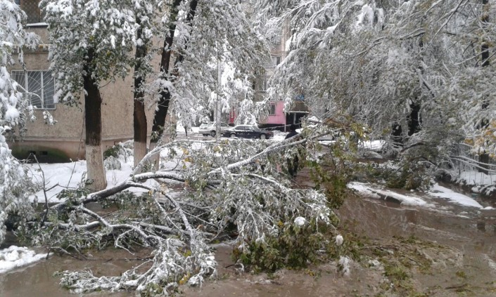 Тем временем, деревья падали также и в Алматы, где в ночь на 14 октября выпал первый снег. Как уточнили в городском ДЧС, всего было зафиксировано 4 таких случая - деревья и ветки падали на дорогу. Пострадавших нет.