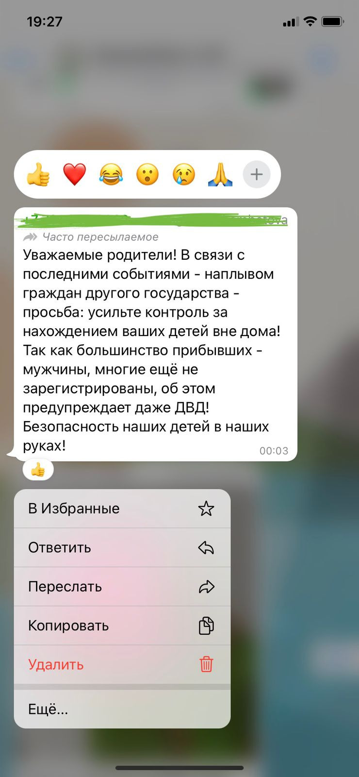 Казахстанцы начали получать сообщения в WhatsApp с просьбой усилить контроль за детьми вне дома. В сообщении предупреждают о наплыве мигрантов-мужчин.