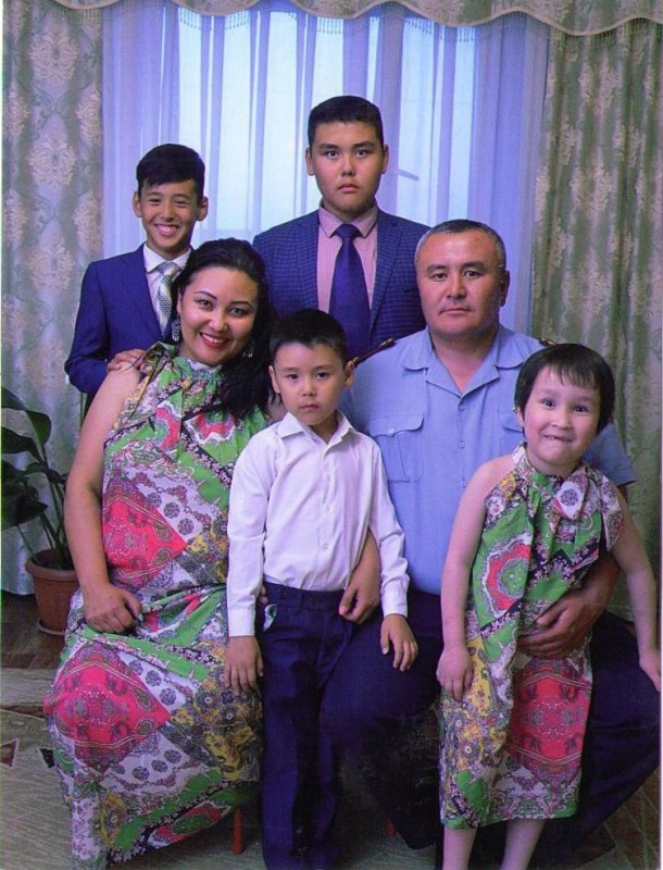 "У меня прекрасная жена и трое замечательных сыновей, теперь еще и дочь, о которой я всегда мечтал. Старший сын Алдияр закончил восьмой класс, занимается кикбоксингом, средний сын Улан - борьбой, а младший сын Жанали пойдет в этом году в первый класс вместе со своей сестренкой Умидой. У нас дружные и самостоятельные дети, могут справиться с любыми домашними обязанностями: убраться в доме, обед разогреть и приготовить что-то несложное, если нужно", - рассказал о своей семье мужчина.