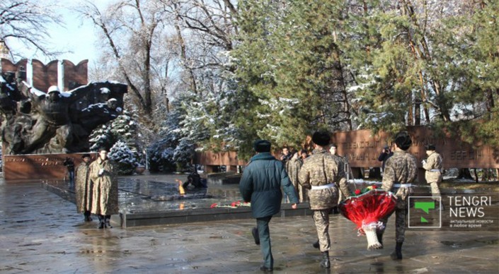 В Алматы отметили 74-ю годовщину подвига 28 гвардейцев-панфиловцев, передает корреспондент Tengrinews.kz. Несколько десятков человек возложили цветы к Вечному огню в память о погибших солдатах.