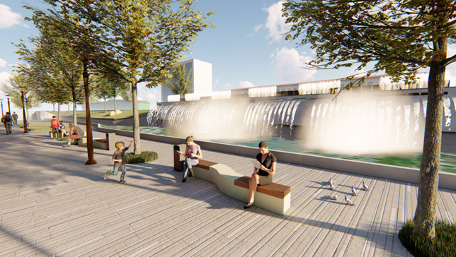 На месте старого неработающего бассейна на пересечении проспекта Абая и улицы Байсеитовой появится фонтан в виде спиральных струй, также с ночной подсветкой.