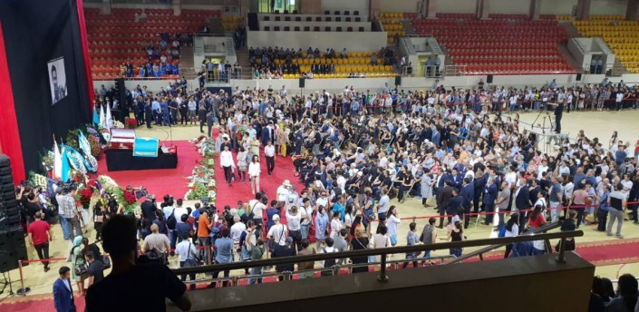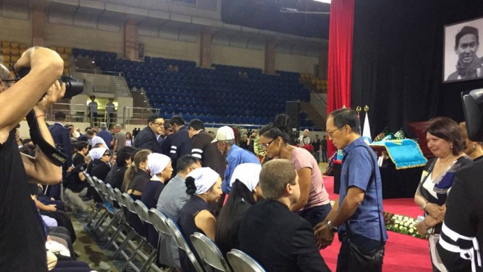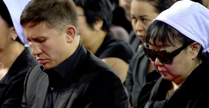 Известный боксер Геннадий Головкин днем ранее специально вылетел в Казахстан из США, прервав тренировки ко второму бою с мексиканцем Саулем "Канело" Альваресом, чтобы присутствовать на похоронах.